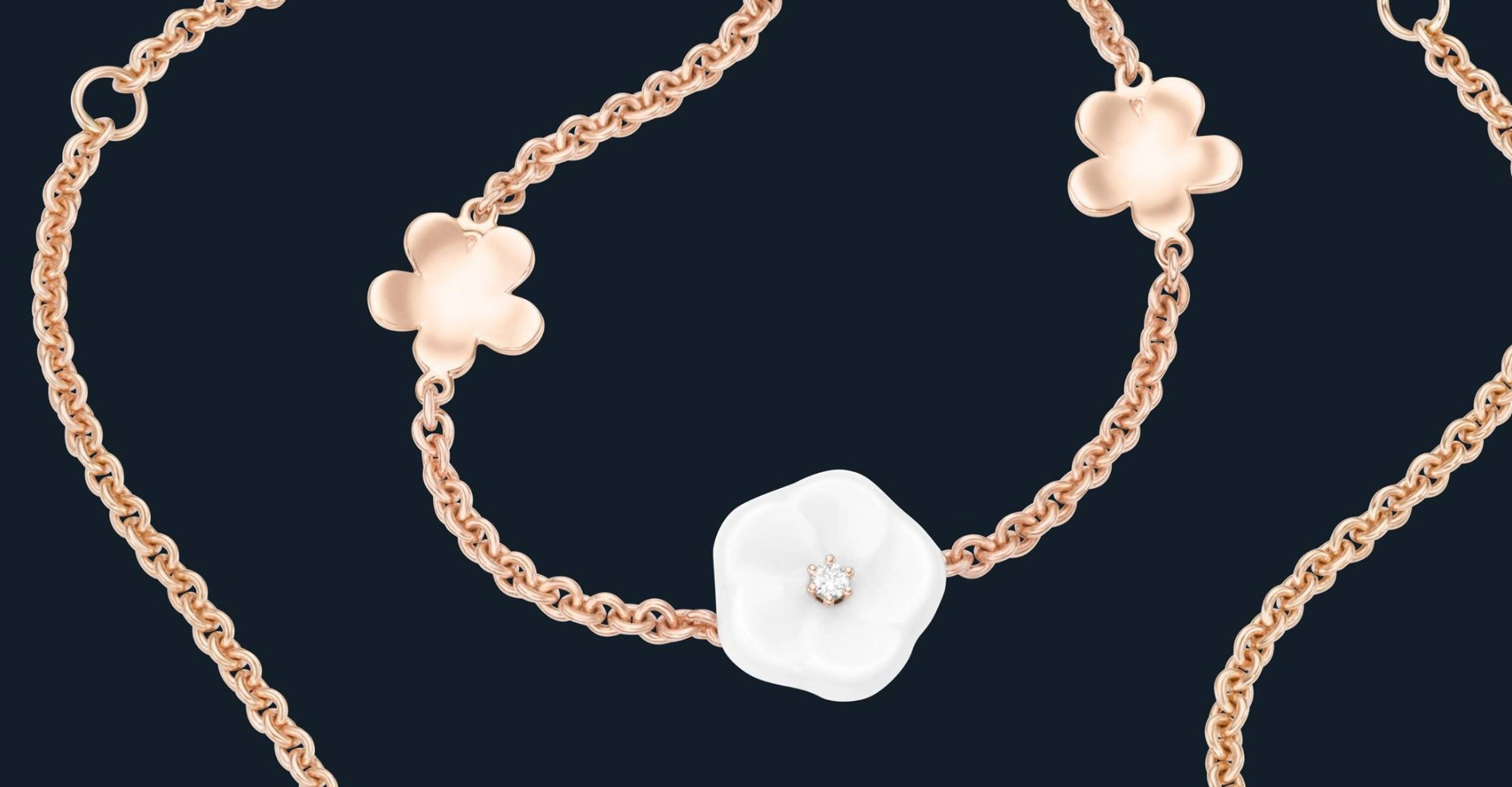 Until today, the “Royal Blossom” still ranks as one of the most preeminent decoration motifs of the Meissen manufactory. Created in 1739 at the behest of King Augustus III for his Queen Maria Josepha, the porcelain blossoms have been reinterpreted nearly three centuries later as jewellery with gold and diamonds.